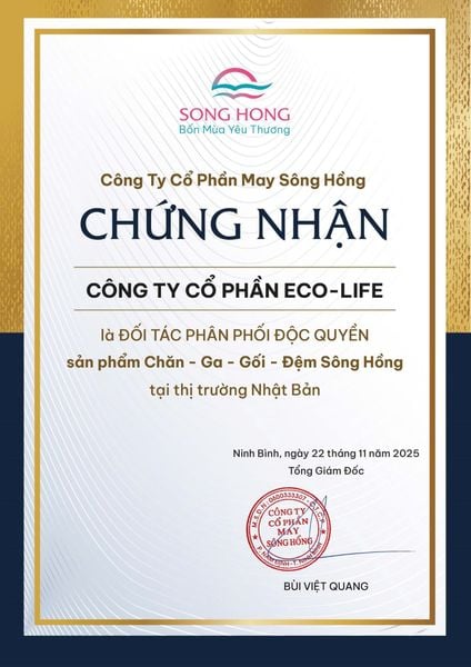 Chúng tôi trân trọng công bố Công ty Cổ phần ECO-LIFE (trụ sở chính đặt tại Tokyo) là nhà phân phối độc quyền dòng sản phẩm chăn ga gối đệm cao cấp Sông Hồng tại thị trường Nhật Bản – một trong những thị trường có yêu cầu khắt khe và tinh tế nhất thế giới.